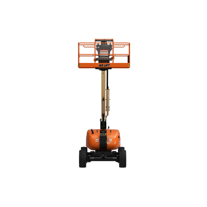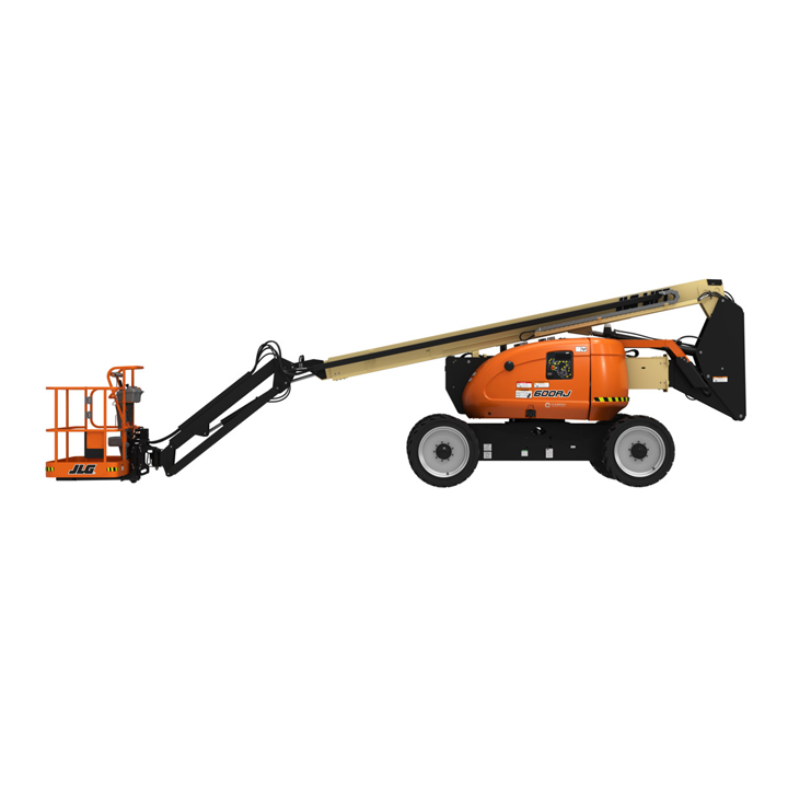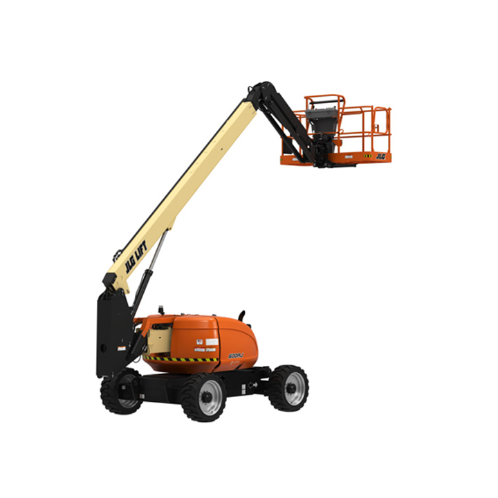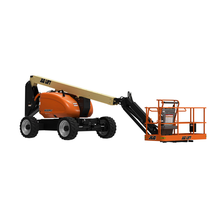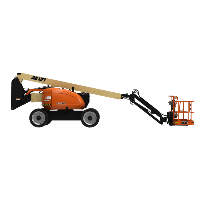 JLG 600AJ Platform height: 60 ft. – 7 in. Horizontal outreach: 39 ft. – 9 in. Platform capacity: 500 lbs. Operating weight: 22,691 lbs. DSL engine