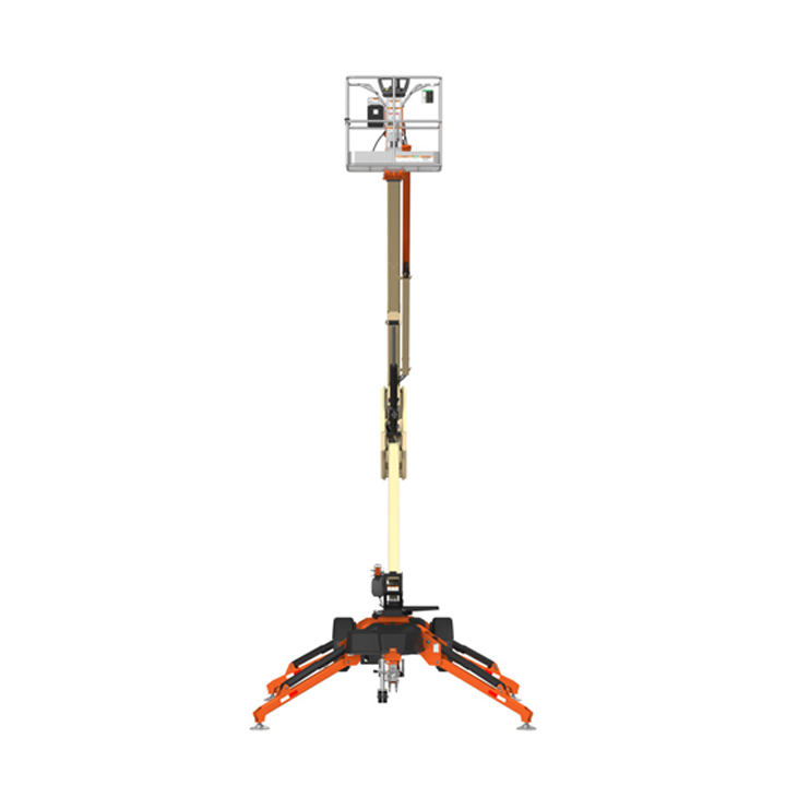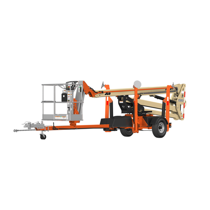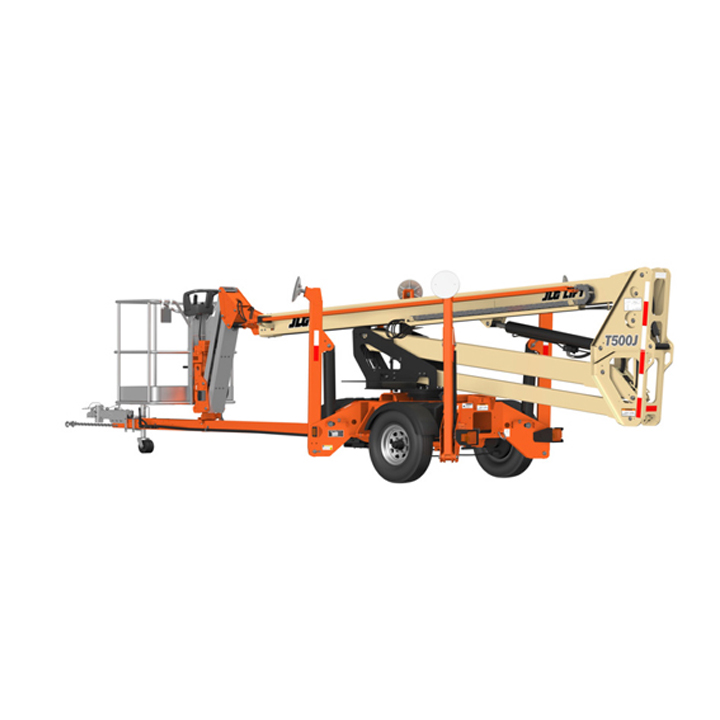JLG T500J Platform height: 50 ft. Horizontal outreach: 31 ft. – 6 in. Platform capacity: 500 lbs. Operating weight: 5,200 lbs. Battery powered
