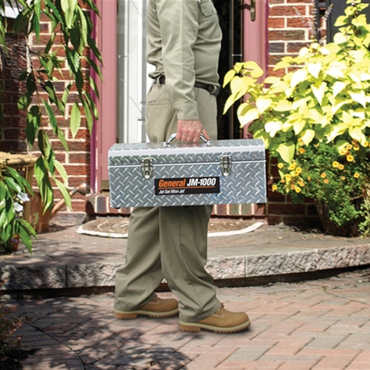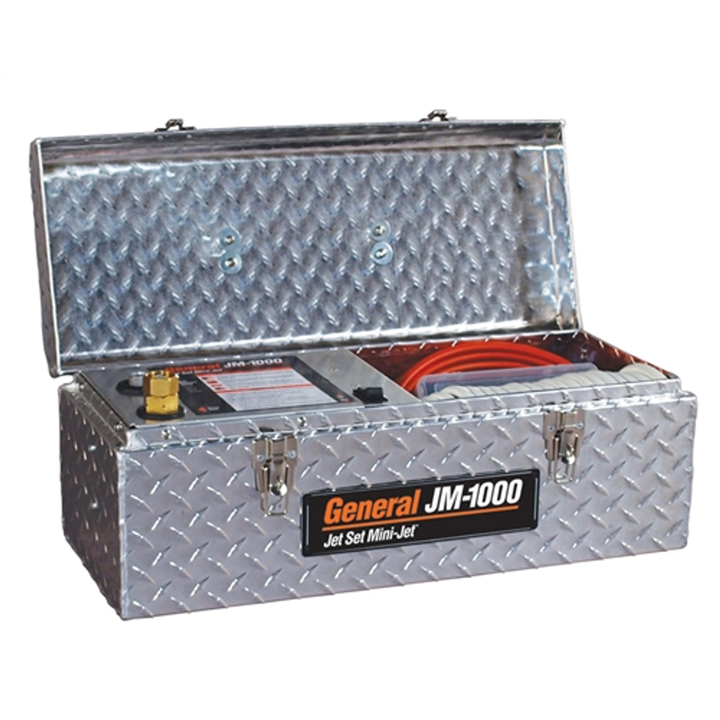General JM1000 X Mini-Jet Compact and lightweight design allows for easy transport Clears 1 1/2 in. – 3 in. drain lines Equipped to handle drains lines up to 50ft.