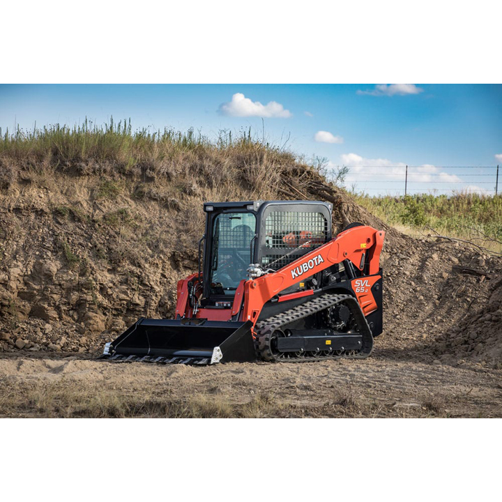Kubota SVL65 Operating capacity: 2,100 lbs 68 Horsepower Max dump height: 9 ft. – 10 in. Operating weight: 8,035 lbs.