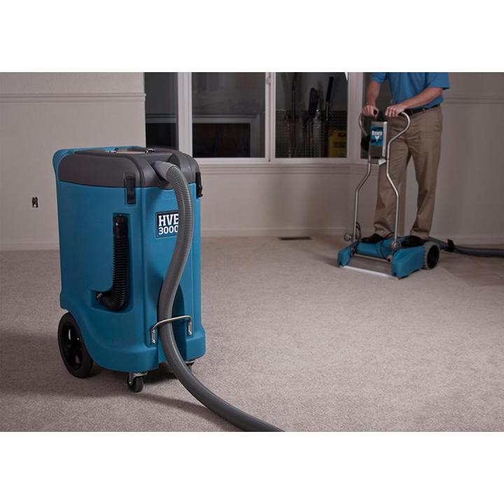 Dri-Eaz HVE 3000 Rugged design with low center of gravity for added balance Large capacity waste tank of 12 gallons Equipped with Hepa filter Includes 25 ft. of 2 in. suction hose