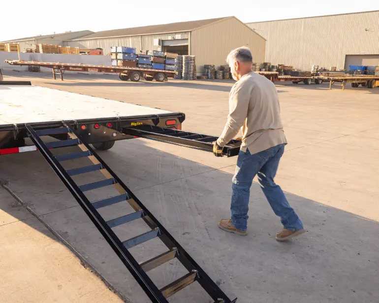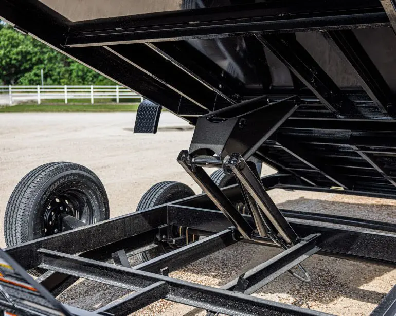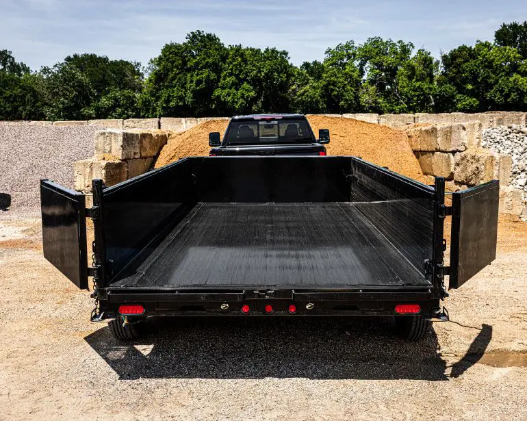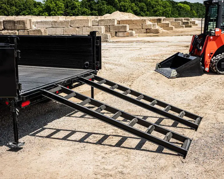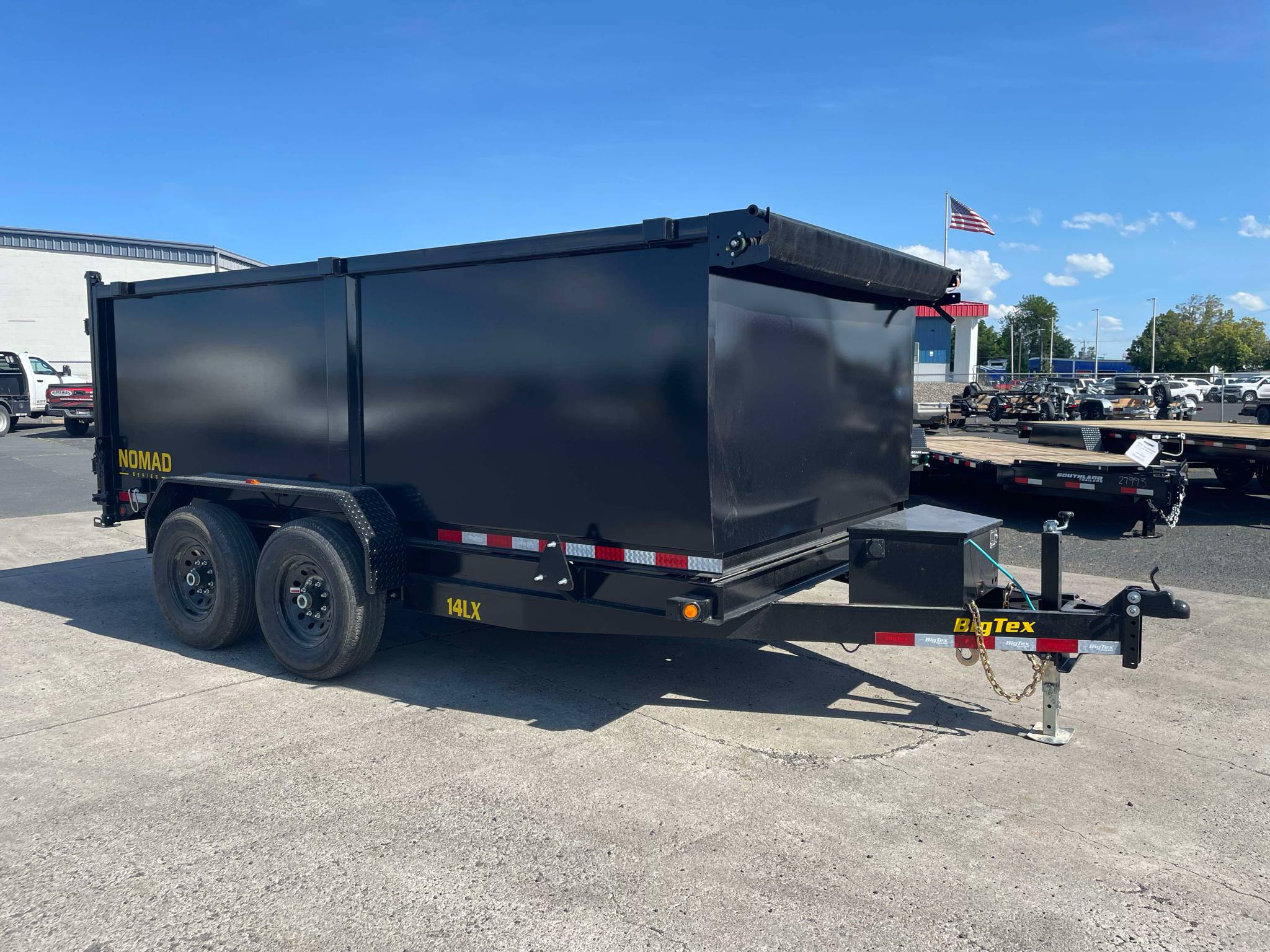 Dump Trailer – Tandem Axle Big Tex 14LX – Nomad Hydraulic power up and power down design Equipment ready design equipped with loading ramps 7 yd. capacity and up to 10,300 lbs. 40 deg. dump angle