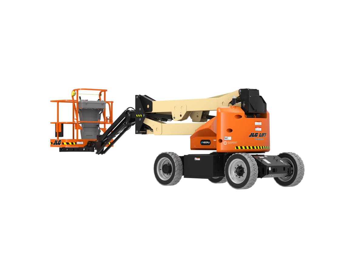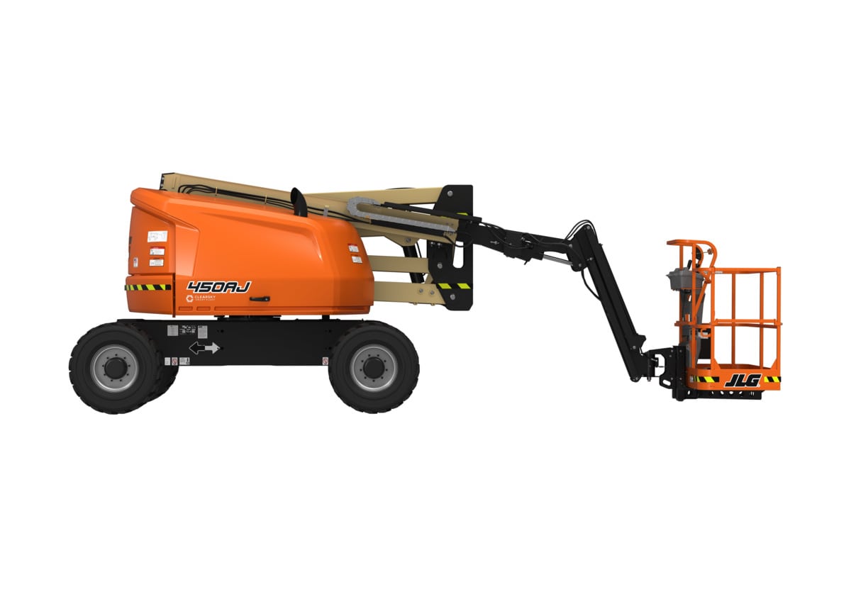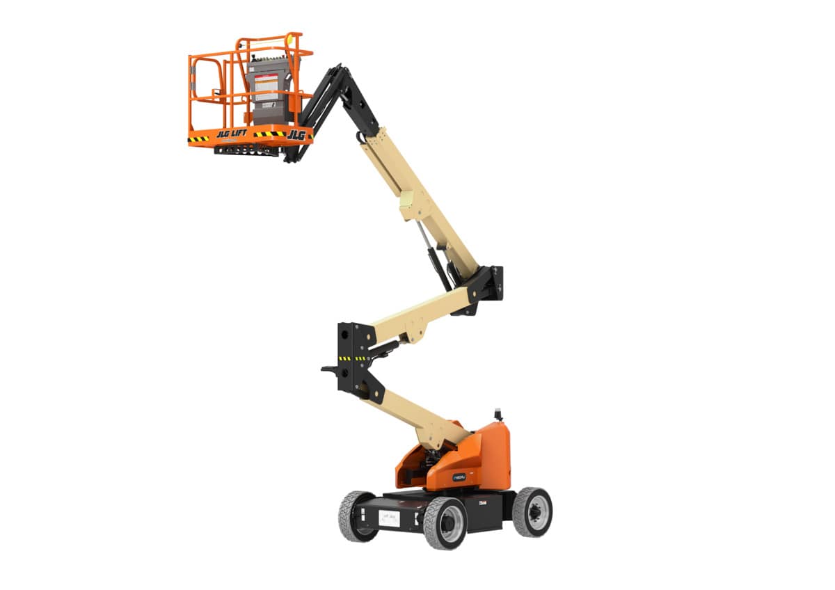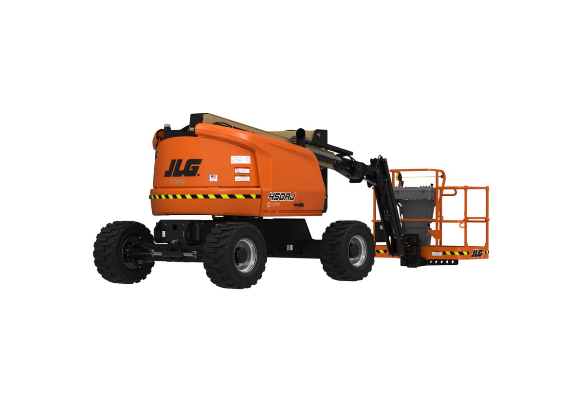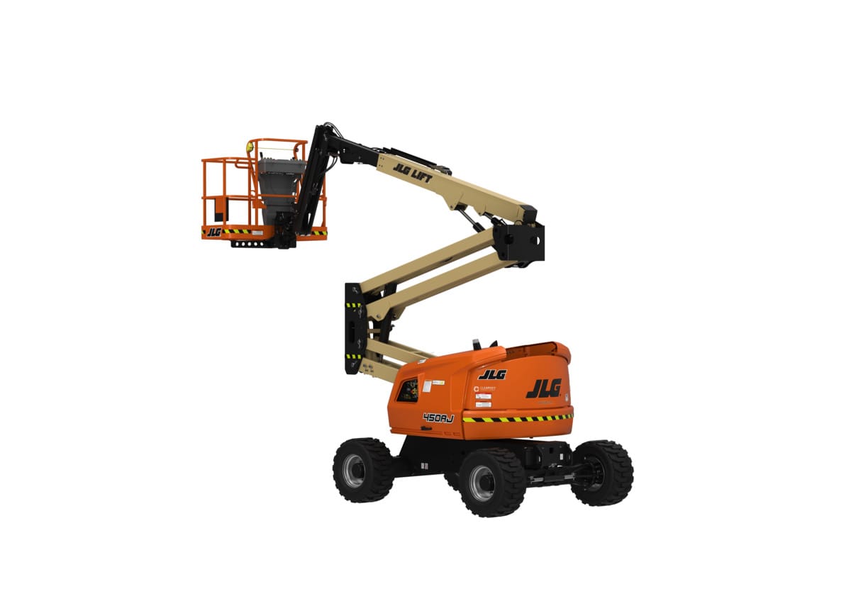 Articulating Boom Lift 45′ JLG 450AJ Platform height: 45 ft. Horizontal outreach: 25 ft. Platform capacity: 550 lbs. Operating weight: 14,150 lbs. DSL engine