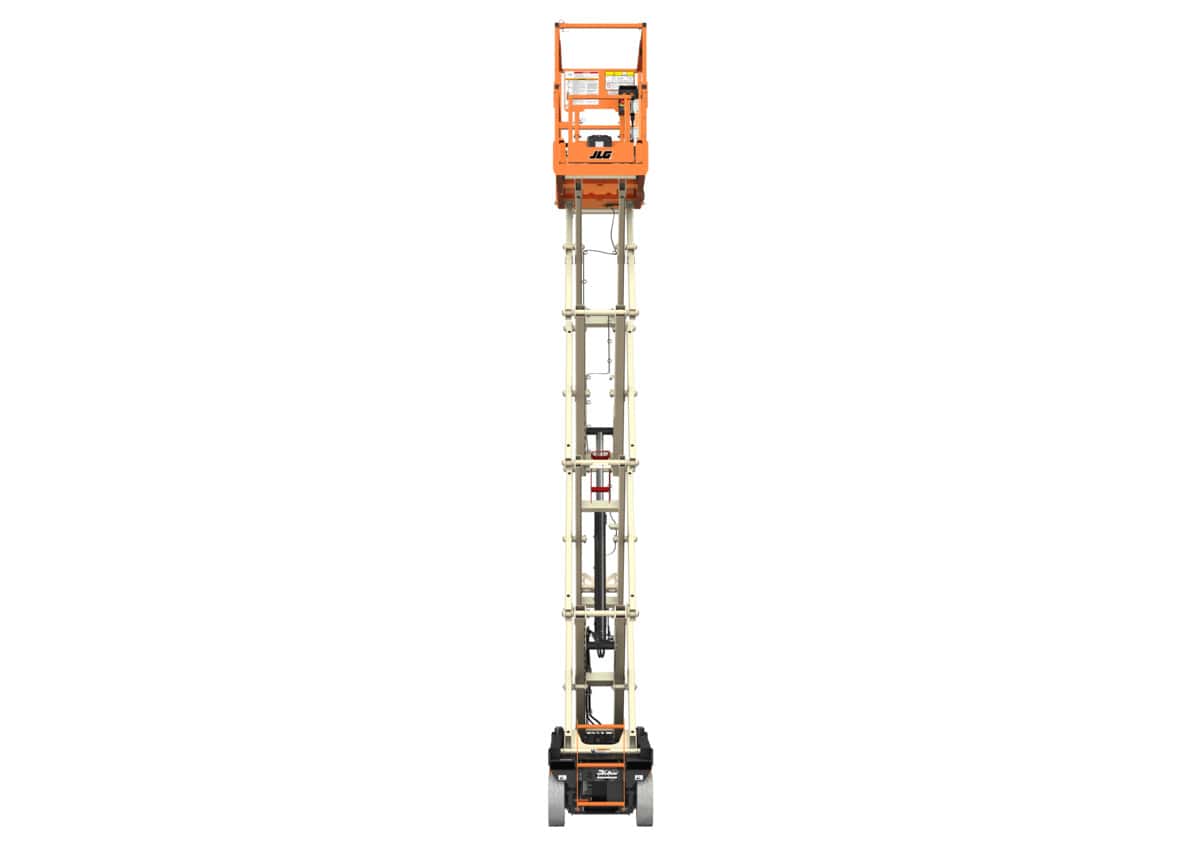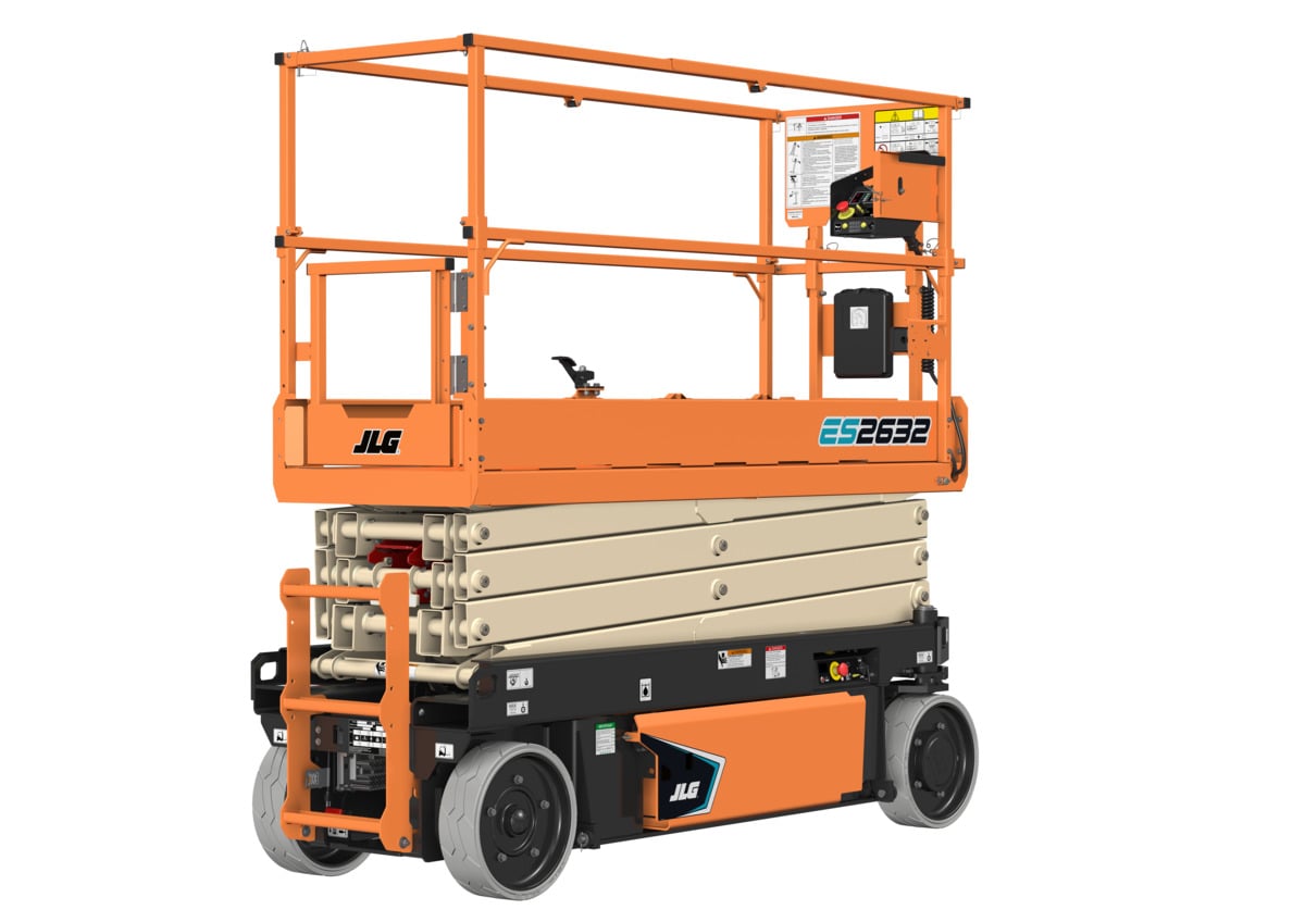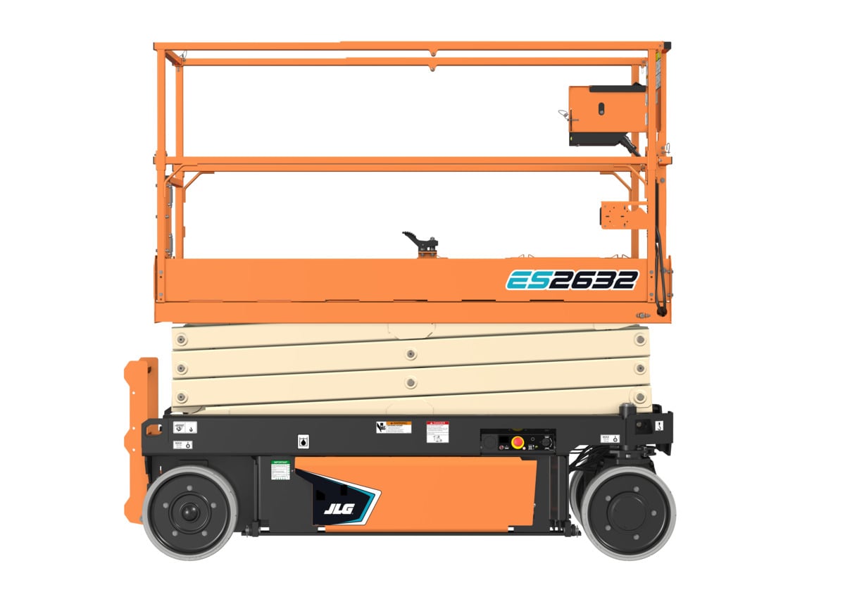 Aerial Electric 26′ Scissor Lift JLG ES2632 Maximum platform height: 26 ft. Platform capacity: 500 lbs. Operating weight: 4,400 lbs. 34 in. platform extension Non-marking tires