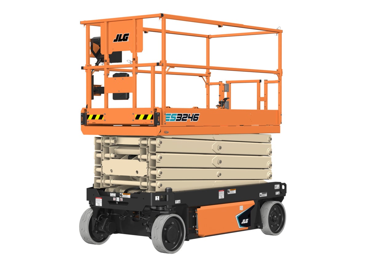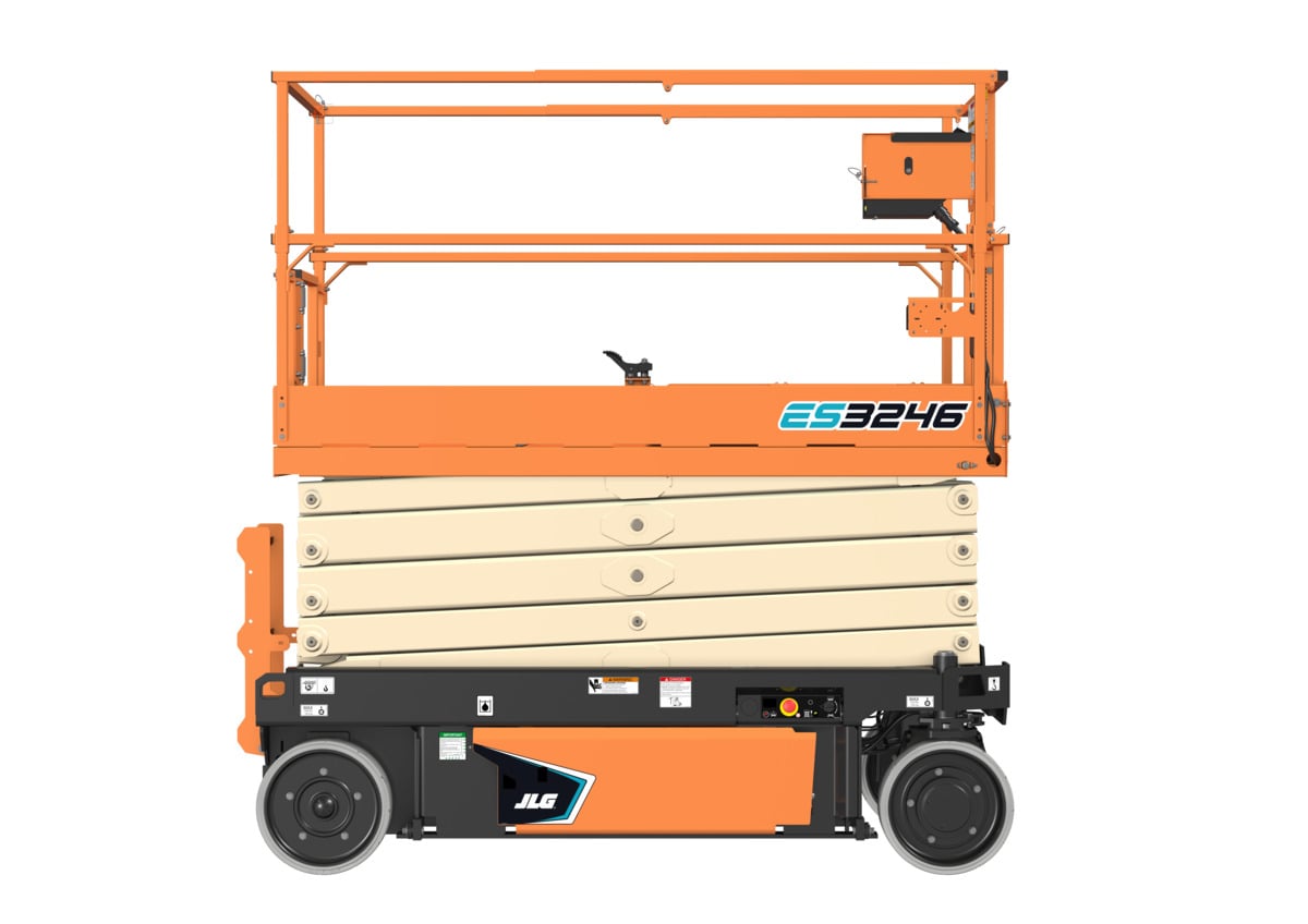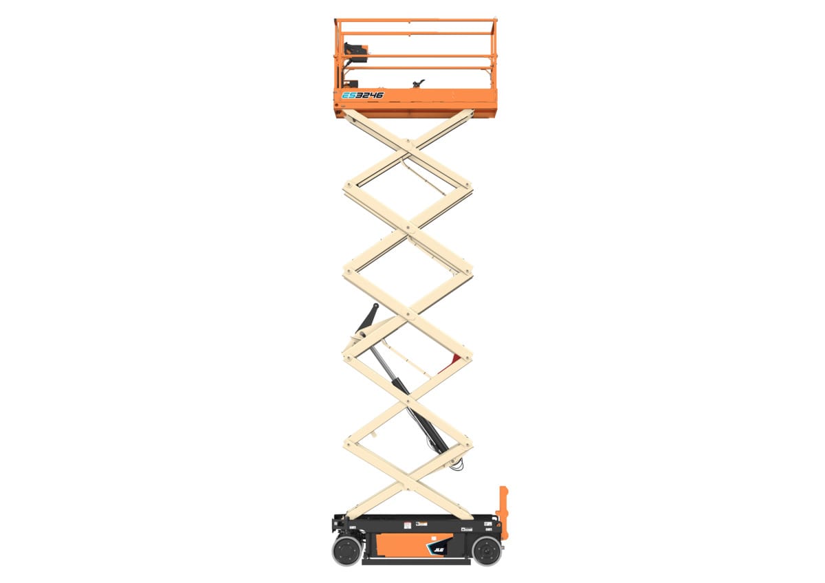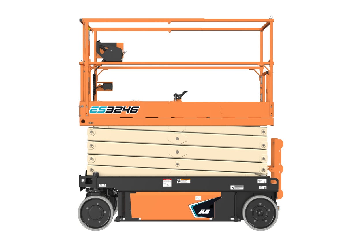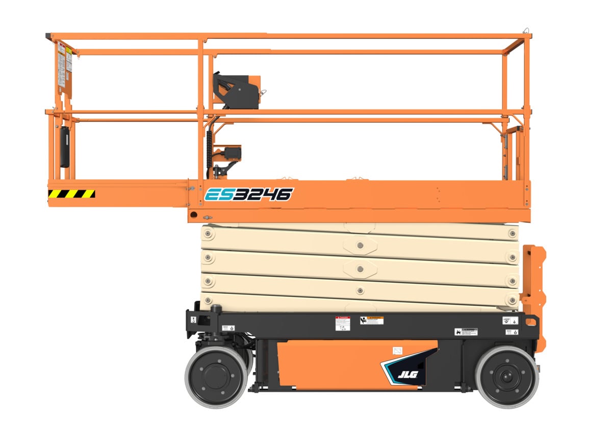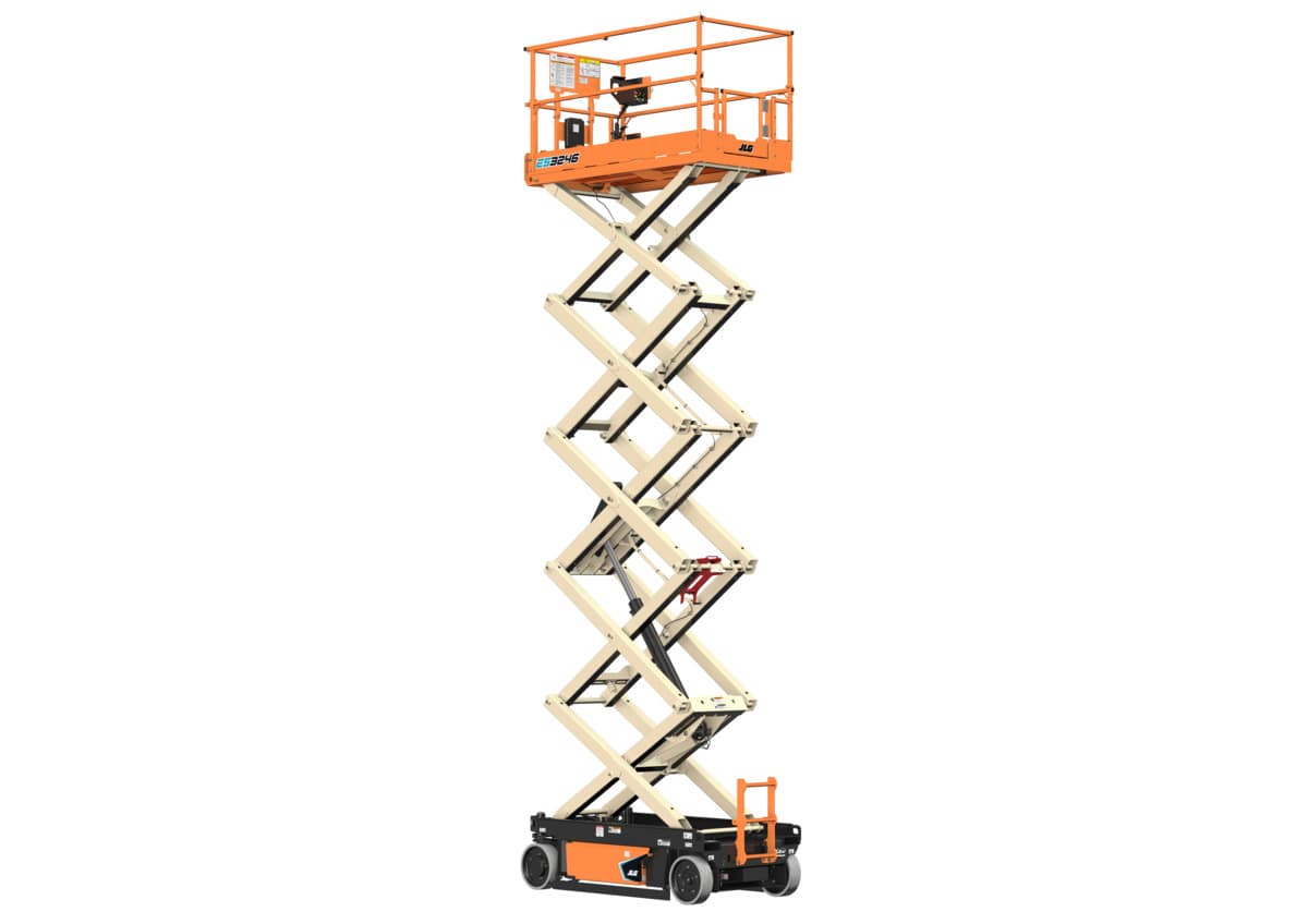 Electric 32′ Scissor Lift JLG ES3246 Maximum platform height: 32 ft. Platform capacity : 700 lbs. Operating weight: 5,620 lbs. 36 in. platform extension Non-marking tires